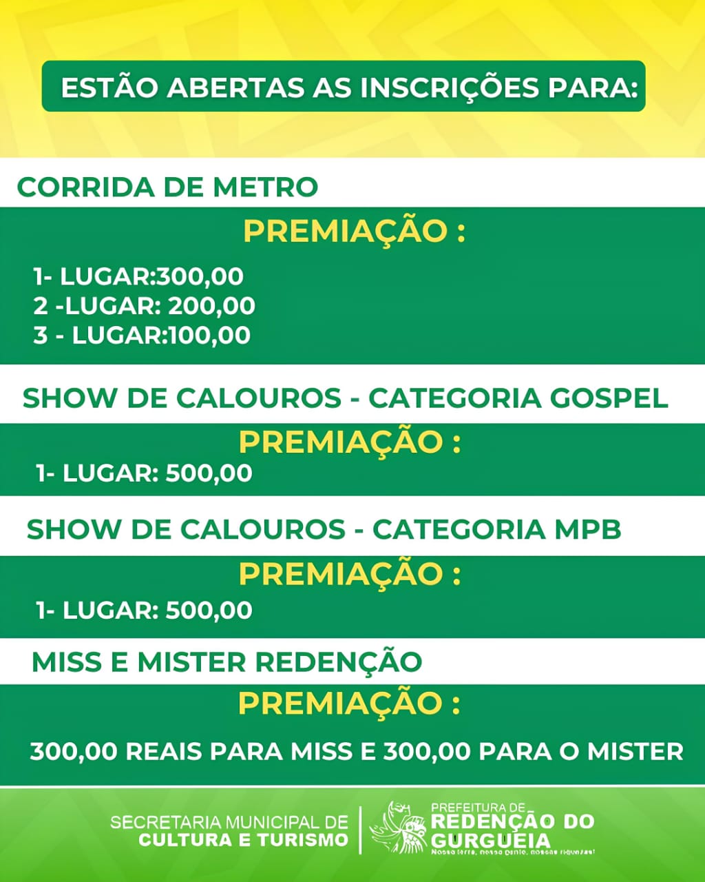 A programação reforça o compromisso da gestão em promover inclusão, valorização cultural, apoio ao esporte e fortalecimento da economia local, além de celebrar a história e o desenvolvimento de Redenção do Gurguéia.