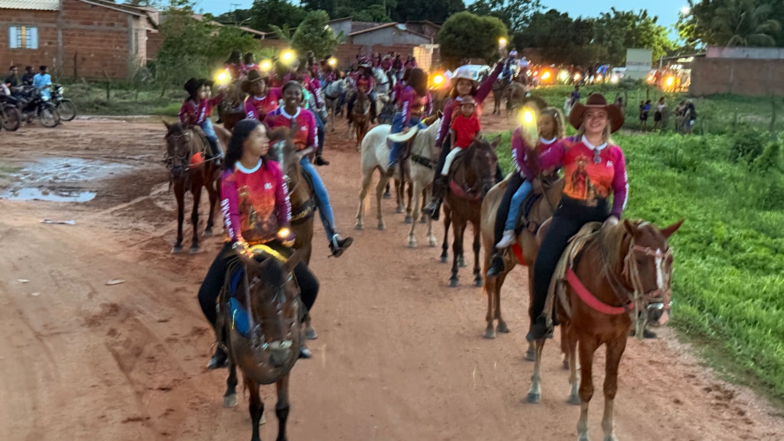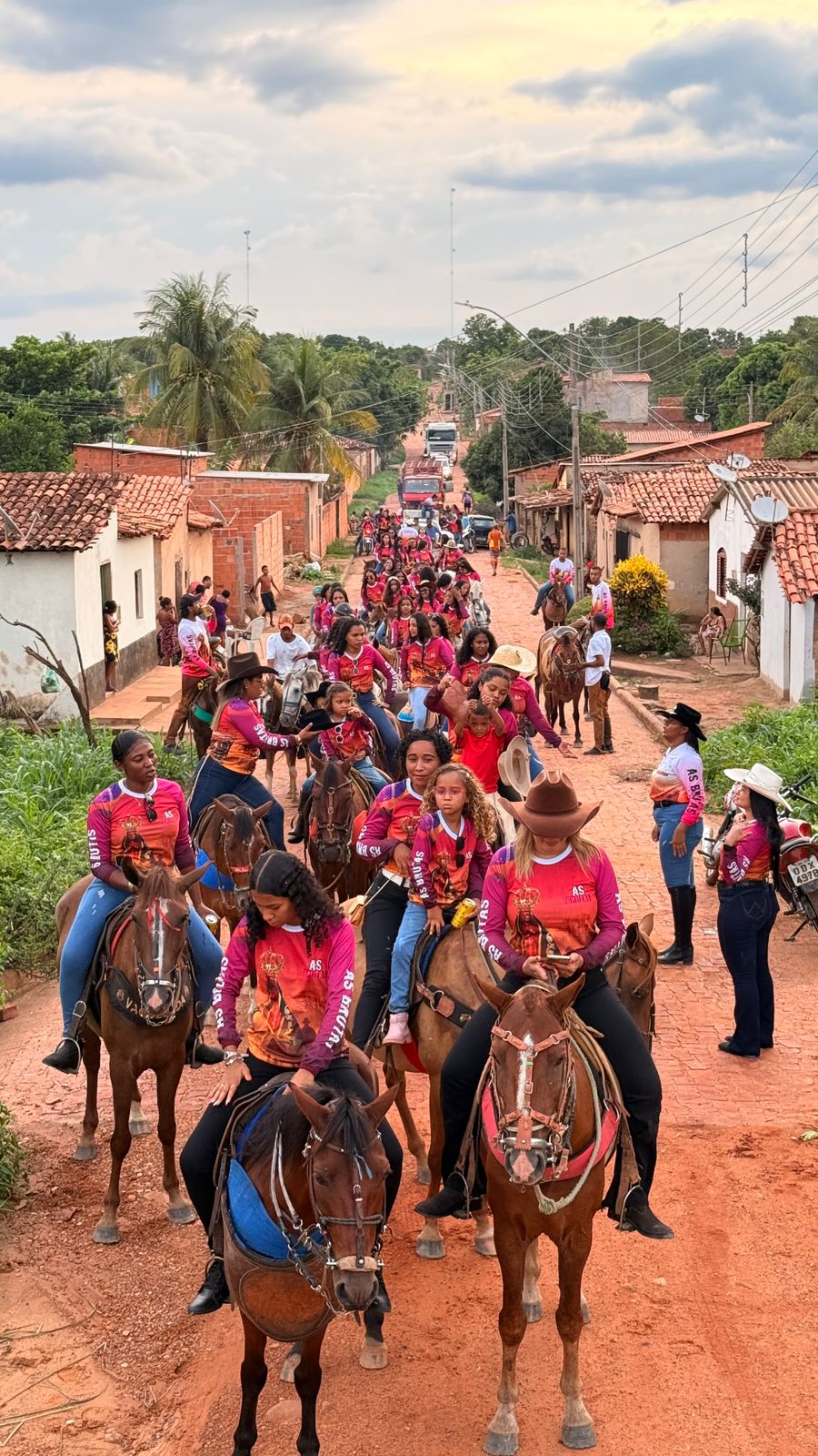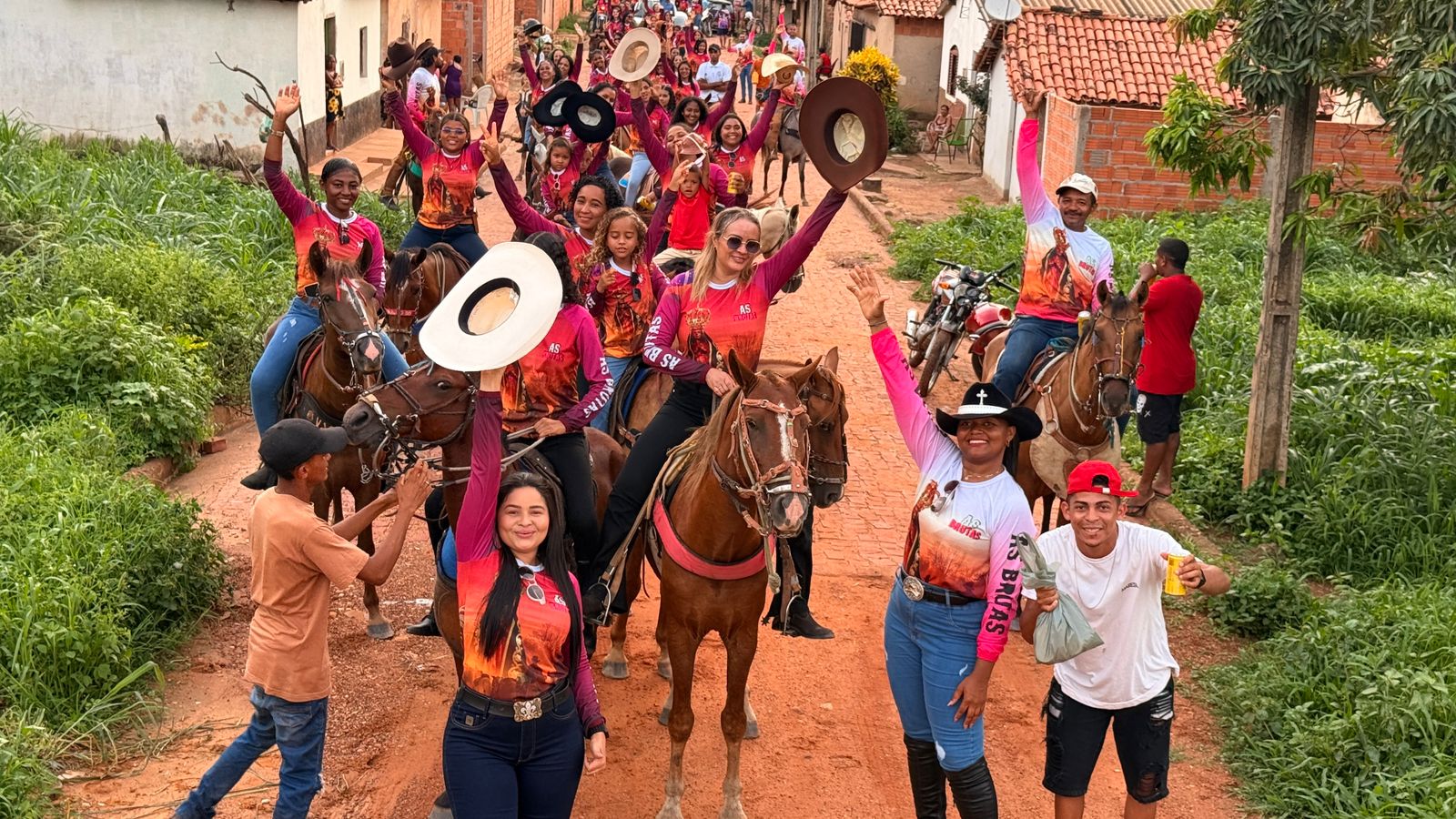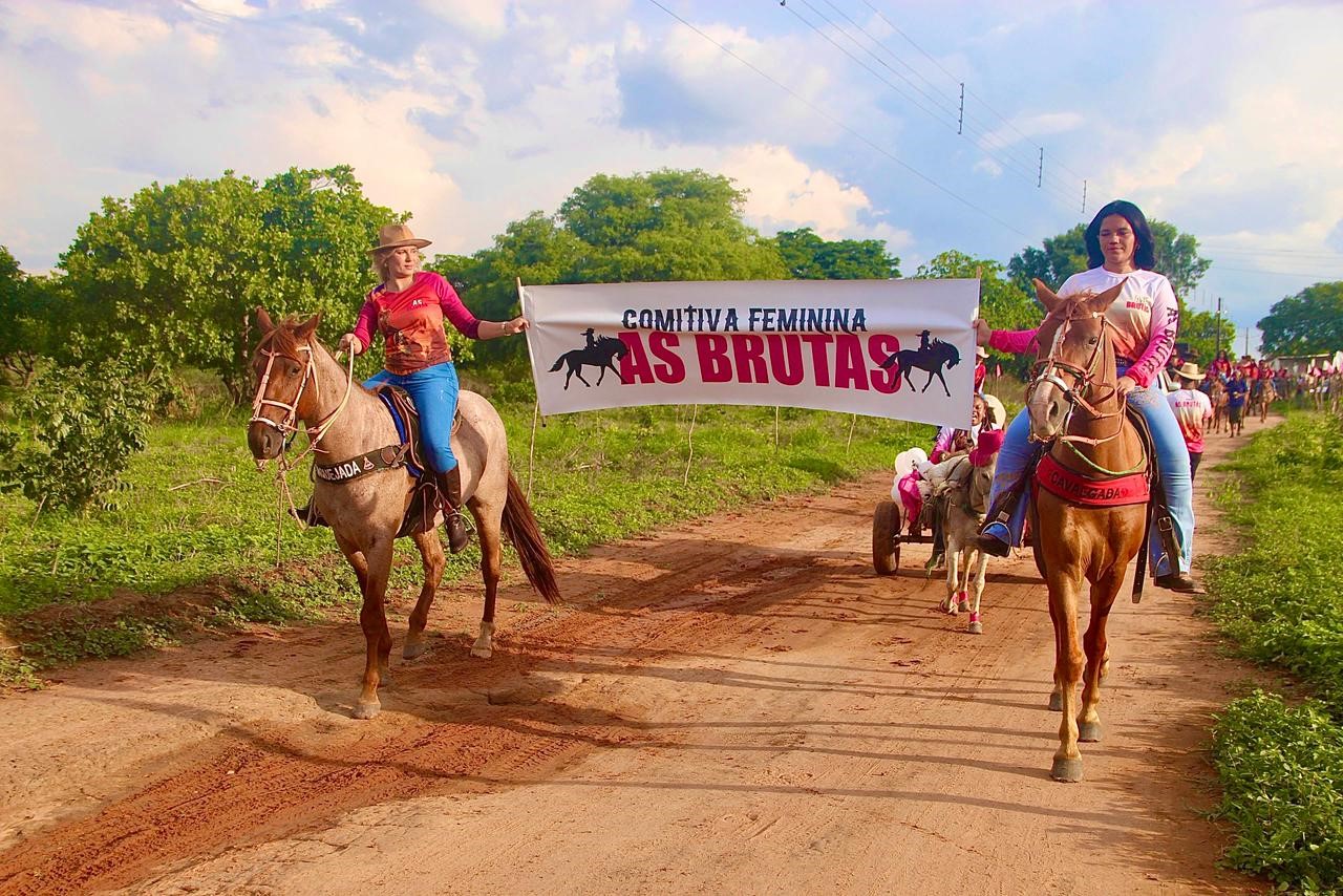 A Cavalgada Feminina “As Brutas” toma as ruas da cidade com força, beleza e identidade: mulheres que conduzem seus cavalos com firmeza, acompanhadas pelo som que ecoa no carro de som, na narração marcante de Tayson, entre carros, motos e aplausos de quem reconhece a grandeza do momento.